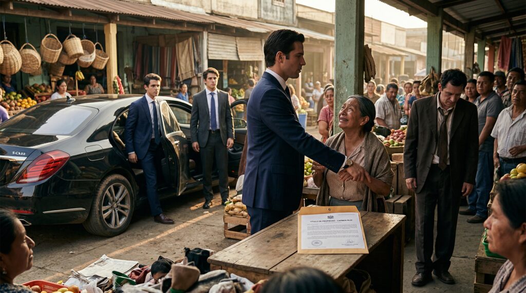 «Esta es la escritura de propiedad de este local comercial, y de los tres terrenos adyacentes», le explicó con una sonrisa inmensa. «La deuda millonaria que el banco le exigía ha sido pagada en su totalidad esta misma mañana, con los fondos personales de mi hermano y míos. Además, he cancelado el proyecto del centro comercial. Este mercado no se toca. Ahora usted no es solo una vendedora, Doña Carmen. Usted es la legítima dueña de este espacio. Nadie, nunca más, podrá levantarle la voz ni intentar quitarle lo suyo.»